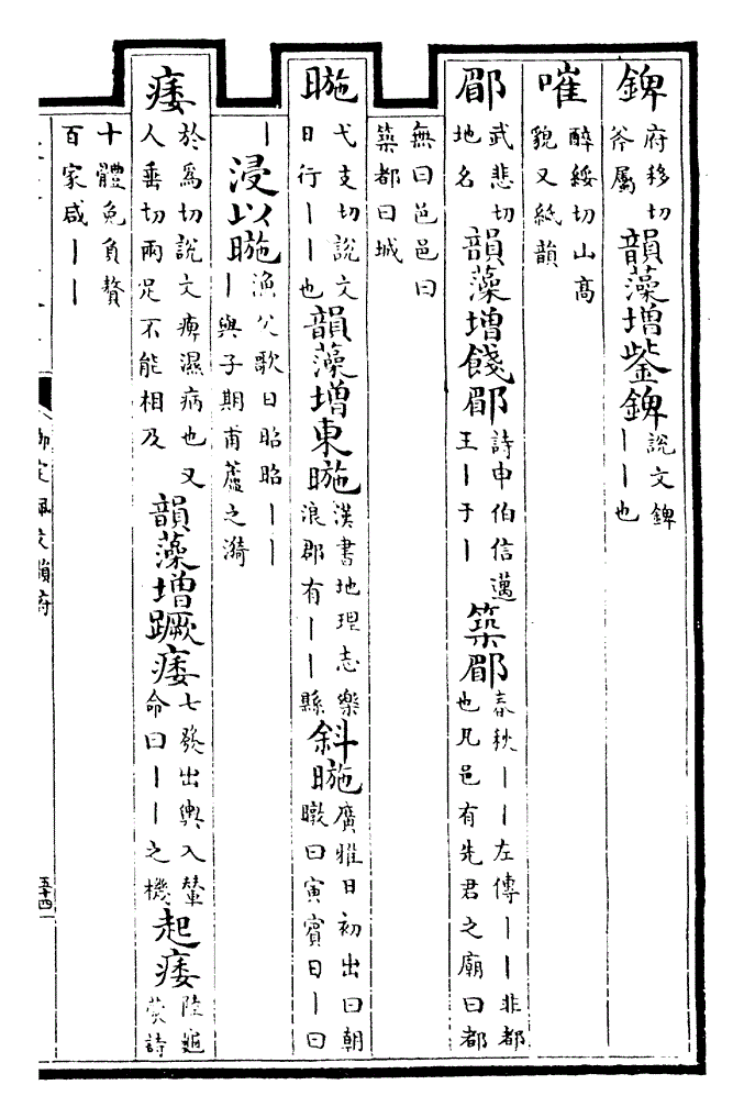 四支平聲 時(shí) 詩(shī) 知 期 遲 枝 之 悲 奇 思 絲 師 姿 池 離 為 [作為]移 宜 垂 辭 疑 兒 眉 誰(shuí) 隨 詞 持 衰 馳 卮 吹 癡 碑 斯 危 儀 私 夷 旗 滋 巵 饑 [餓也]披 祠 籬 湄 支 欺 遺 差 [參差]棋 茲 帷 涯 窺 追 墀 規(guī) 施 資 漪 疲 嬉 基 頤 芝 卑 虧 羈 怡 司 岐 皮 慈 陲 炊 嗤 醫(yī) 脂 陂 熙 肌 漓 維 麾 茨 蕤 璃 咨 其 龜 曦 歧 欹 髭 螭 迤 [委迤,自得貌]推 [順遷也,類(lèi)推]伊 累 [系累]姬 脾 緇 彝 雌 錐 尸 葵 治 [理也]貽 釐 騎 [跨馬,動(dòng)詞]飔 疵 飴 縻 箕 巇 貲 糜 尼 羆 梨 玆 羸 痍 鸝 楣 夔 萎 [蔫也]隳 而 篪 綏 彌 逵 貍 洏 鴟 ? 噫 [恨聲]羲 攲 蘺 肢 洟 [鼻液]澌 [水索也]裨 麋 椎 罹 匙 嘻 孜 ? 猗 屍 綦 媸 崎 笞 陴 蛇 [委蛇]驪 醨 比 [比鄰]麗 [高麗]菑 齊 [衣下曰齊。又與薺通]罳 禧 咿 胝 瓷 輀 怩 蓍 嫠 罷 坻 [水中高地]淄 篩 鶿 居 [語(yǔ)助辭]嵫 耔 [音茲]毗 耆 姨 獅 萁 惟 蚩 鬐 錘 犧 踟 書(shū) [音詩(shī)]貔 嵋 訾 絺 祁 榱 鷥 緌 醾 ? 祺 寅 [音夷]釃 睢 匜 犁 [牛駁]祇 隋 蘼 埼 騅 眵 魑 孳 [生息]縭 氏 [月氏]提 [群飛貌]扅 槌 凘 僛 嶷 [九嶷]摛 瓻 塒 褷 倕 祗 騏 琦 圯 崖 戲 [嗚戲,嘆辭]丕 畸 葹 埤 邳 蜊 敧 [以箸取物]坯 熹 氂 [犛牛尾也。又與釐通。]廝 琪 跜 磁 錙 痿 撝 鰭 詒 [相欺也。遺也]鎚 粢 梔 蜞 簃 壝 壘 [重也。又與累同]踦 [蹇也]黐 輜 漦 偲 [偲偲,相切責(zé)也]馗 [與逵同]蠡 [谷蠡。瓠勺]玼 鮞 餈 丌 淇 鈹 鰣 僖 甤 ? 冞 ? 娭 脽 鸃 胹 媯 犄 觺 鴯 ? 椸 箠 [節(jié)也]觿 縲 虒 鼒 戣 厓 剞 祎 雖 黧 眙 [舉目貌。又縣名]緦 茈 骴 坨 椅 [梓也]臺(tái) [我也。悅也。]厘 赍 麒 嚱 [口聲]伾 襹 骙 鵻 紕 栭 榿 黟 峗 諆 髵 呞 榰 庳 [下也]欙 ? ? 咦 锜 逶 絁 蚳 蓰 倛 覗 耛 ? 疧 褫 劘 耏 委 [委蛇]娸 甀 秠 椔 訑 荽 鯔 劙 蔂 宧 翍 鍉 稘 轜 犠 薺 魌 镃 泜 暆 媐 薋 摫 貤 唯 琵 酏 椑 [木名]妮 觭 濰 駓 郿 唲 郫 跠 禆 濉 虆 峓 ? ? ? 犛 [牛黑色]劑 [剪齊也]呢 纚 蘄 [蘄茝也。求也]趑 螄 剺 禔 鸤 箄 [捕魚(yú)具]罙 恞 錤 洢 阰 仔 [克也,任也]被 [荷衣]觜 诐 黴 觶 溈 齍 鉟 嗞 蛦 倠 厜 ? 桵 ? ? ? 鶀 嵯 [?嵯]旇 跂 蚍 獼 狉 蜘 鳷 鰦 腝 隹 簛 頄 鍦 榯 爢 羠 梩 岯 瓵 ? 澬 樆 腄 陑 頯 蚭 魾 穲 耚 ? ? 吱 胰 謻 鈚 踑 孋 轙 胔 蜲 ? 齝 甾 蘪 熺 噅 糦 ? 齹 藄 蕬 柌 榹 豾 茌 ? ? ? 湤 ? ? ? 秜 ? 箷 ? ? 阺 ? ? 枱 栘 饎 禠 鵯 齜 犪 蚾 夊 蓷 崥 [山足]誒 蠀 偨 狓 鲏 衼 鯬 姕 蟣 鬾 芪 荎 鼺 掑 柂 [木名]鰤 攗 貾 蒒 倭 蠝 ? 荋 ? 廲 陭 柅 仳 麎 誺 瞝 芓 愭 ? ? ? 寪 鄑 鉹 ? 沘 巙 怶 ? 鹛 檹 蚽 ? ? ? ? ? 秪 钚 呰 鄬 ? 萑 鸍 ? 巸 ? ? 槜 ? 蟣 訵 ? 抾 邿 ? ? ? 趀 ? 躸 ? 袻 矀 楒 ? ? ? ? 眭 覣 ? ? ? 鄈 ? 菭 ? 刕 ? 怌 ? [更多…]